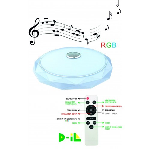 72W LED плафон /MUSIC + RGB + от 3000К до 6500К/ с Дистанционно Управление (65.91€)